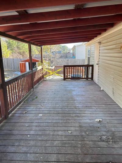 This 4-bedroom, 3-bath home offers a functional and inviting layout with two private en-suite bedrooms plus a separate guest bath — perfect for multi-generational living or hosting guests comfortably. The open-concept kitchen, dining, and living area creates a seamless flow, ideal for everyday living and entertaining.Enjoy cozy evenings by the beautiful fireplace in the living room, adding warmth and charm to the space. Step outside to a covered front porch and a covered rear deck — perfect spots for relaxing morning coffee or evening gatherings.The large, fenced backyard features a wooden privacy fence and storage space, offering plenty of room for pets, play, or gardening.While the home needs some TLC, it is priced to sell and presents a fantastic opportunity to add your personal touch and build equity.Make this home yours today!