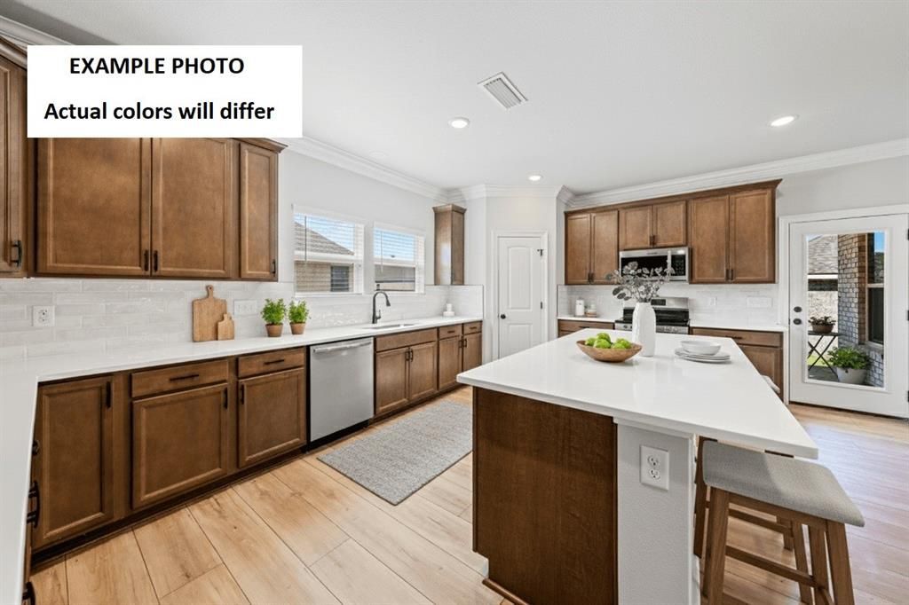 The HICKORY III B in Falcon Bay community offers a 5 bedroom, 3 full bathroom, open and split design with a formal dining room and a separate den off of the living room.Features: double vanity, garden tub, separate shower, linen closet, and a walk-in closet in the primary suite, primary closet has a second door that open up next to the laundry room for added convenience, double vanities in the second and third bathrooms, a kitchen island overlooking the living room, spacious walk-in pantry, boot bench at the garage entry, covered front porch, covered rear porch, ceiling fans in the living room and primary bedroom are standard, smart connect wi-fi thermostat, smoke and carbon monoxide detectors, post tension slab, landscaping, architectural 30-year shingles, flood lights, and more! Energy Efficient Features: a kitchen appliance package, low E tilt-in windows, and more!