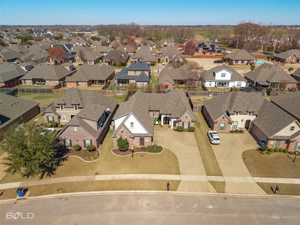 Welcome home to this stunning, well-maintained 4-bedroom, 3-bathroom home in the highly sought-after gated community of St. Charles Court in North Bossier! Offering timeless character, thoughtful updates, and an exceptional financing opportunity with a 2.375% VA assumable interest rate for qualified VA borrowers, this home blends comfort and long-term value. From the charming brick entryway to the inviting open floor plan filled with natural light, every inch of this home feels warm and welcoming. Inside, you’ll find fresh interior paint, hardwood floors in the entry and living area, and beautiful interior brick accents that add architectural interest. The spacious dining area flows into the well-appointed kitchen featuring ceramic tile floors, real wood cabinetry, granite countertops, stainless steel appliances, and stylish lighting. The downstairs primary suite offers ample space, an octagonal tray ceiling and a spa-like bathroom with granite countertops, a jetted tub, separate shower, and a two separate generous walk-in closets. Two additional spacious sized bedrooms and a full bath are located downstairs, while the upstairs bedroom and full bathroom provide flexible space for guests, family, flex space or home office. Step outside to enjoy the extended flagstone patio with pergola and flagstone pathway—perfect for relaxing or entertaining. Additional features include a side-entry, oversized 2-car garage, a front and back yard irrigation system, and beautiful curb appeal. Residents enjoy gated access, a community pool, clubhouse, fitness center, and scenic neighborhood ponds. Conveniently located near I-220, I-20, Barksdale Air Force Base, hospitals, shopping, dining, and within the highly sought-after Benton school district, this exceptional North Bossier home offers the ideal blend of location, condition, and lifestyle.