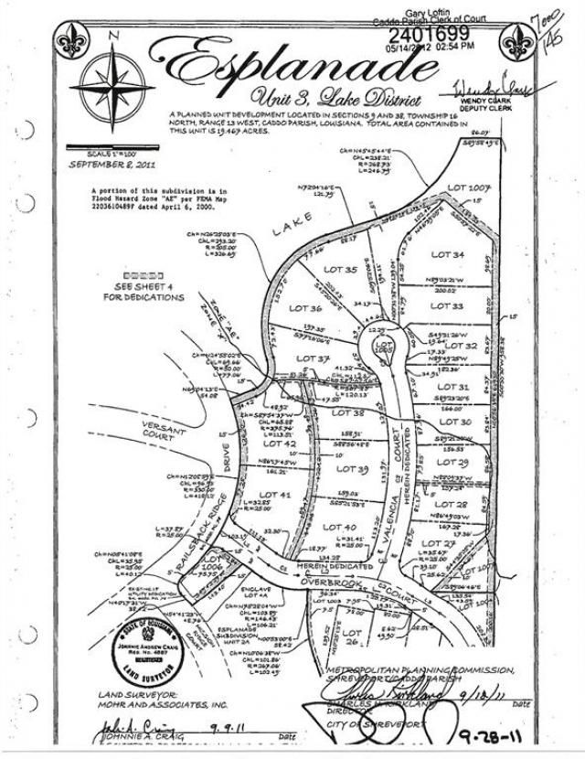 Don't miss one of the best remaining lake view lots available in Esplanade Subdivision. Just shy of an half-acre and tucked into a private cul de sac on Valencia Court, this lot won't be available for long. Come see what all Esplanade has to offer -- convenient access to LA 3132, I-49 & Youree Drive while still enjoying the best small neighborhood in NWLA.